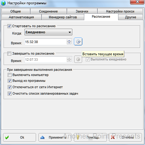 Здесь мы можем указать время, в которое автоматически начнутся все закачки, и время в которое они автоматически остановятся, а также варианты действий при завершении закачки. перейдем к меню "автоматизация".